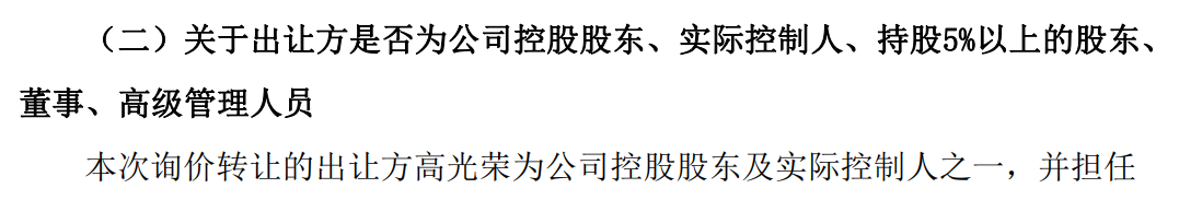 公告称,高光荣承诺自本次询价转让完成后12个月内不通过二级市场方式减持公司股份。